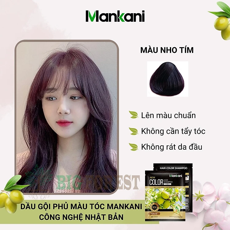 Gói Dầu Gội Nhuộm Tóc, Phủ Bạc Thảo Dược Mankani [Gói 25ml - Nho Tím]