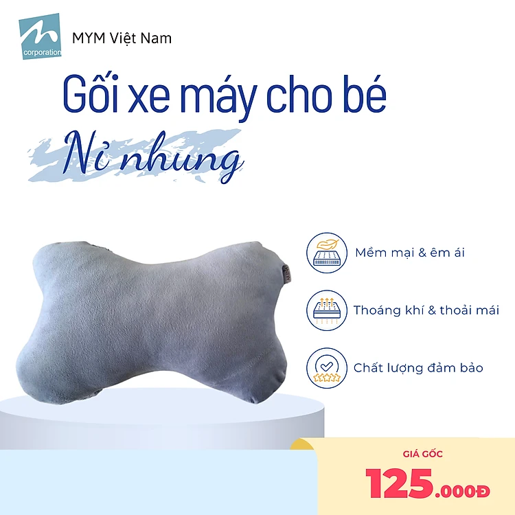 Gối Đi Xe Máy Cho Bé MYM Chất Vải Nhung Mềm Mại, Êm Ái