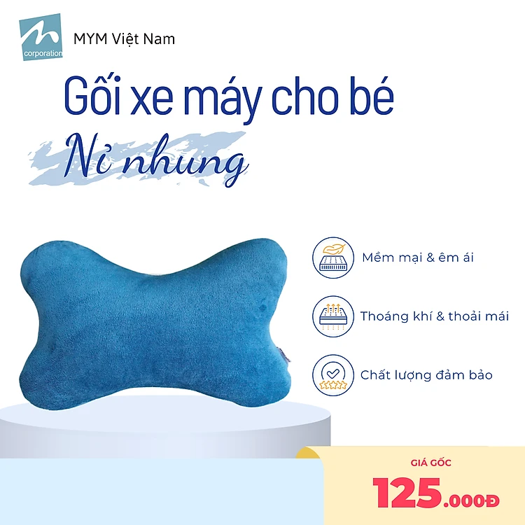 Gối Đi Xe Máy Cho Bé MYM Chất Vải Nhung Mềm Mại, Êm Ái