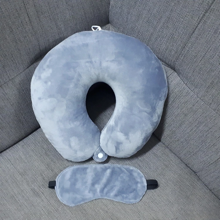 Gối kê cổ văn phòng kèm bịt mắt có dây treo nút bấm - xám