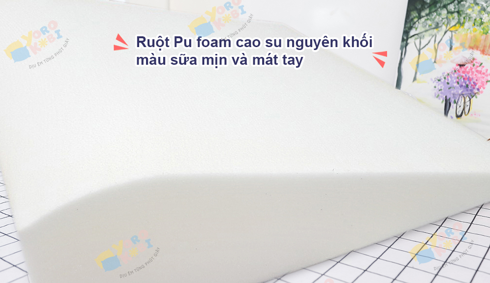 Ruột gối là Polyurethane foam cao cấp nguyên khối, không bị cắt xén, có độ nẩy và đàn hồi, không sụt lún. Độ bền 5-7 năm.