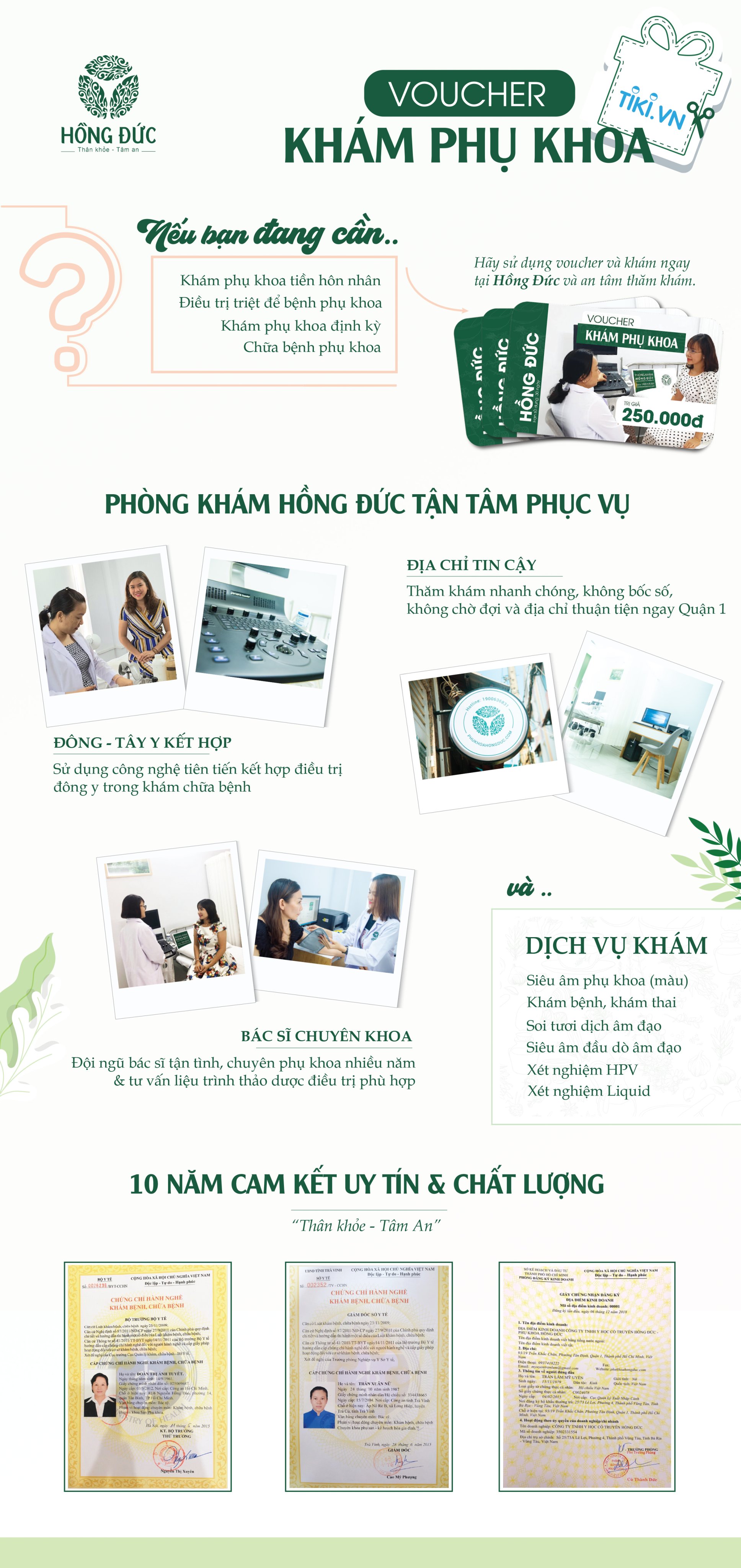Phòng khám phụ khoa Hồng Đức tự hào hơn 10 năm kinh nghiệm cùng đội ngũ y bác sĩ lâu năm, chuyên nghiệp sử dụng máy móc công nghệ tiên tiến hiện đại giúp chẩn đoán chính xác các căn bệnh phụ khoa và tầm soát các bất thường hoặc nguy cơ có thể gây ung thư nên chị em cũng chẳng cần lăn tăn “phụ khoa Hồng Đức có tốt không” hay “phụ khoa Hồng Đức lừa đảo” nhé.