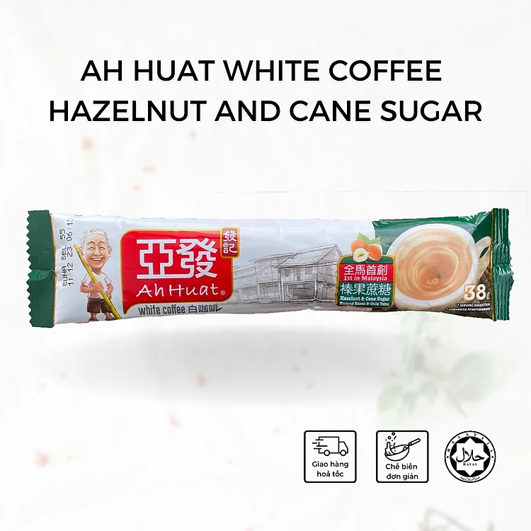 [Gói lẻ] Cà phê trắng ông già hoà tan Malaysia - Vị Hạt phỉ và đường mía (Ah Huat White Coffee - Hazelnut and Cane Sugar)