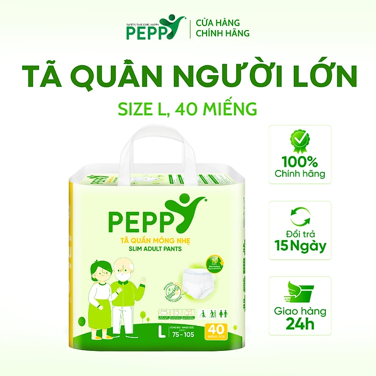 [GÓI LỚN TIẾT KIỆM] Tã/Bỉm Quần Người Lớn, Người Già Peppy Siêu Mỏng, Siêu Thấm, Kháng Khuẩn size M/L (40 Miếng)