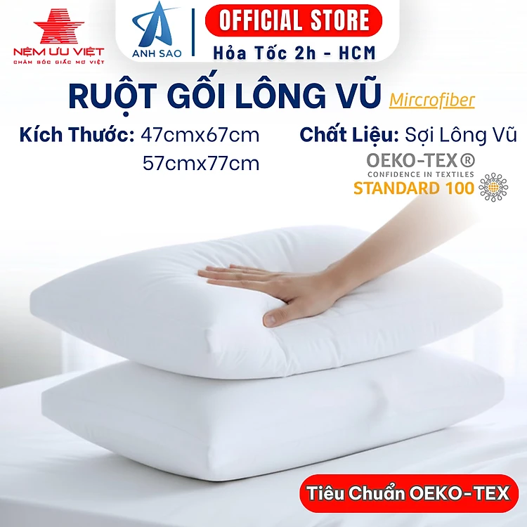 Gối Lông Vũ Mircrofiber Cao Cấp Ưu Việt (Có Túi Xách) 47x67cm Đạt chuẩn OEKO-TEK An Toàn Với Da