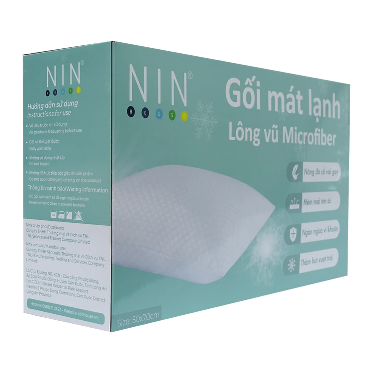 Gối lông vũ nhân tạo mát lạnh Cool Plus NIN House 50x70cm, ruột gối nằm gòn microfiber cao cấp