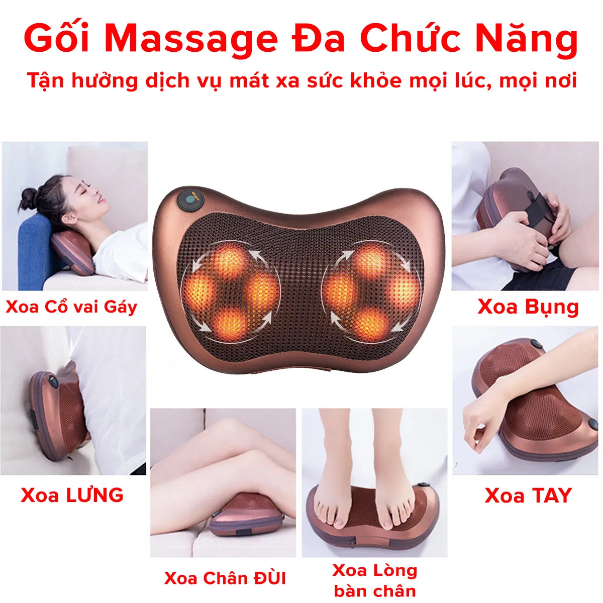 - Gối massage cổ với thiết kế tân tiến 8 bi có khả năng xoay 360 độ massage chuyên sâu xoa bóp vào các cơ huyệt
