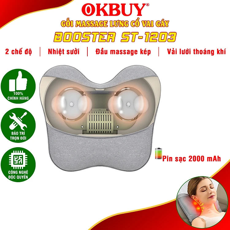 Gối massage lưng và cổ vai gáy hồng ngoại Booster Boluojun ST-1203