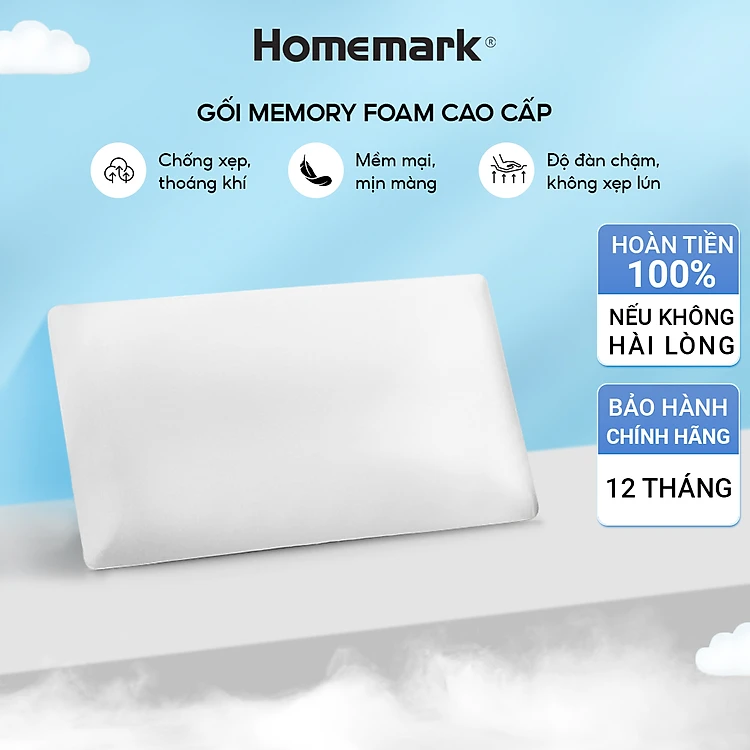 Gối Memory Foam Homemark Cao Cấp – Giảm Đau Vai Gáy, Nâng Đỡ Cổ, Thoáng Khí, Siêu Êm Ái