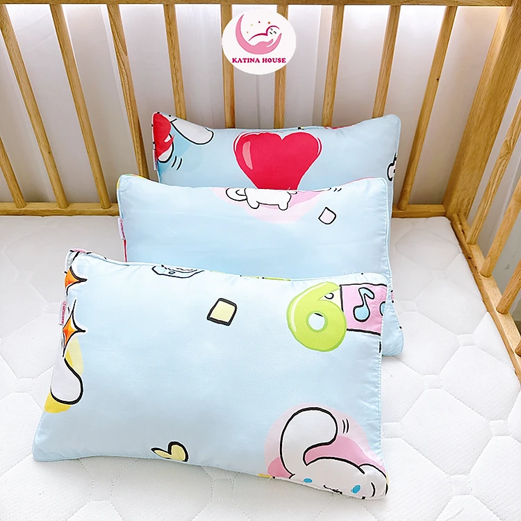 Gối nằm trẻ em Katina House, vải tencel 30x45cm ruột gòn lông vũ mềm mát, siêu êm, thấm hút tốt