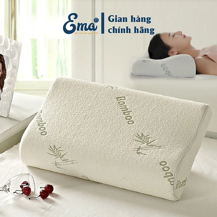 Gối ngủ cao su non vỏ sợi tre kháng khuẩn EMA - Phong cách Nhật Bản - Chống đau mỏi cổ vai gáy, ngủ ngáy