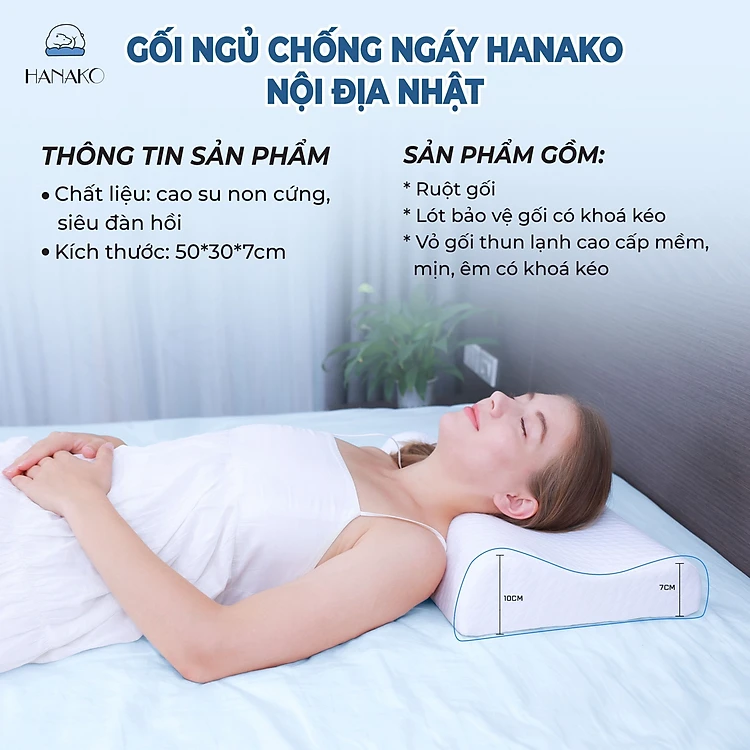 Gối ngủ chống đau vai gáy công thái học HANAKO nội địa nhật, chất liệu mút cô đặc cao cấp