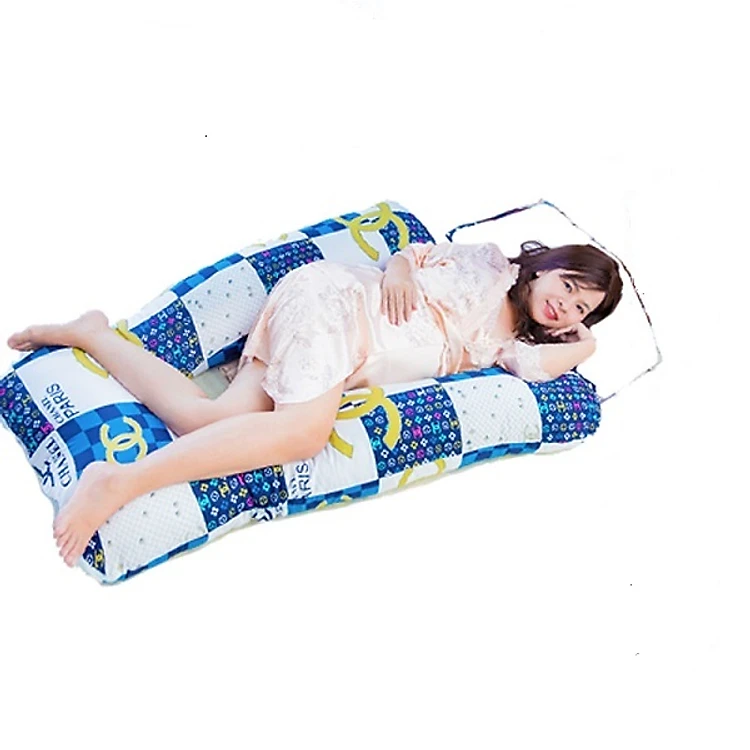 - Vỏ bọc ngoài làm từ chất liệu cotton xưởng may Thắng Lợi mềm mại, êm ái an toàn cho da và sức khỏe mẹ bầu. Gối dày dặn, thấm hút mồ hôi tốt nên tạo cảm giác thông thoáng, dễ chịu thoải mái khi nằm ngủ.