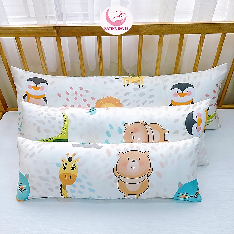 Gối ôm dẹp đa năng cho bé Katina House, Tencel 60s mát mịn, gòn lông vũ êm ái, an toàn, vừa gối đầu vừa ôm, tựa được