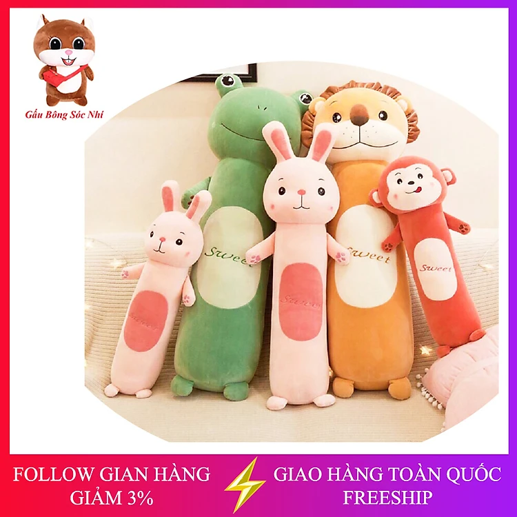 Gối Ôm Hình Thú, Gấu Bông Ôm Ngủ Cho Bé Cao Cấp - Đồ Chơi Thú Nhồi Bông Hình Thú Đủ Size Bông Gòn PP 3D Tinh Khiết Vải Nhung Mềm Mịn, Co Dãn 4 Chiều, Bền Đẹp, Không Bung Chỉ, Dễ Sử Dụng, An Toàn Cho Bé