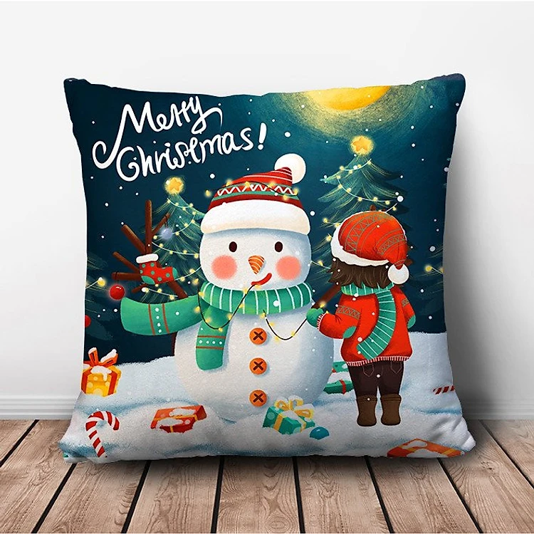 Gối ôm vuông Noel người tuyết (gồm vỏ và ruột)