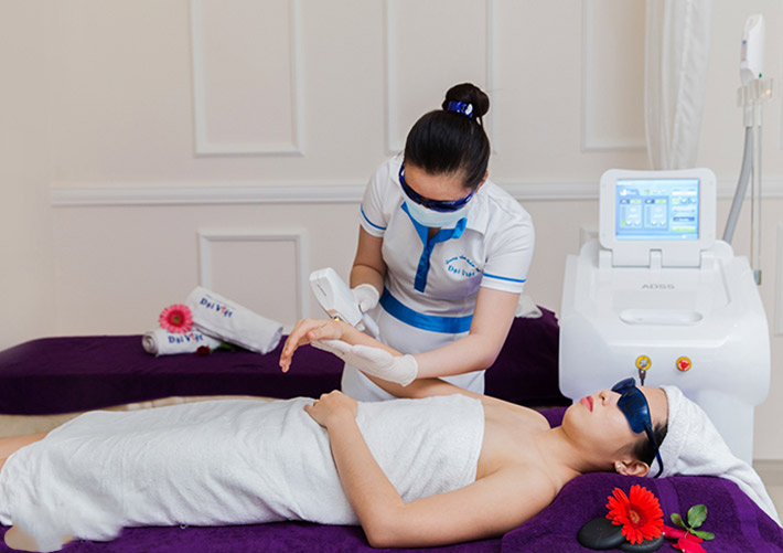 - Bước 5: Chiếu chùm tia ánh sáng Laser Super Hair.