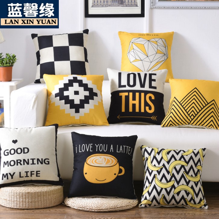 - Gối tựa lưng sofa đen vàng phối màu được làm từ chất liệu polyester cao cấp. Cùng vỏ gối bằng vải bố gai mềm mịn, cho người dùng cảm giác ấm áp khi sử dụng.