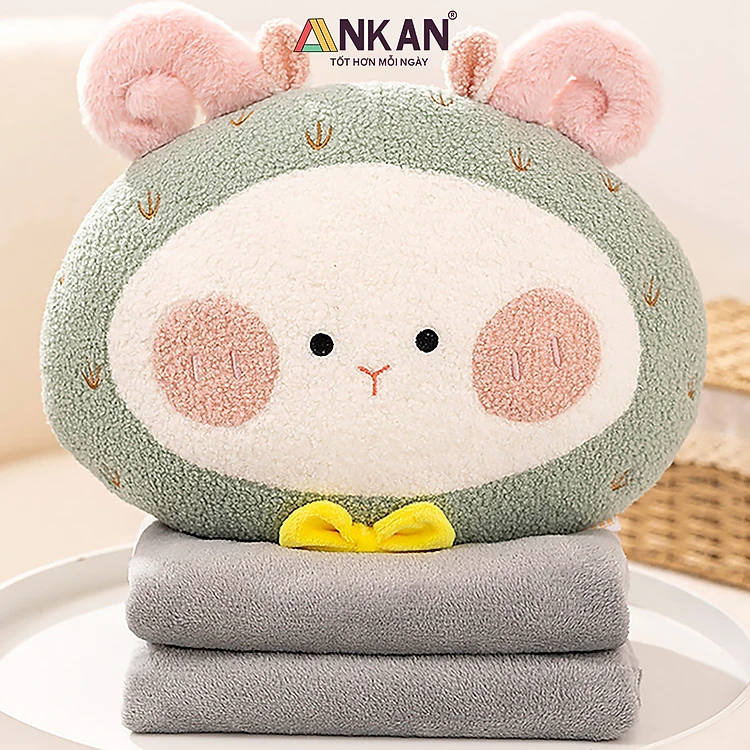 Gối Tựa Lưng Văn Phòng Kèm Chăn 3 Trong 1 Cừu Xanh Mint Cao Cấp, Dùng Để Ngủ Tại Văn Phòng, Đi Du Lịch Hoặc Quà Tặng Cho Người Thân