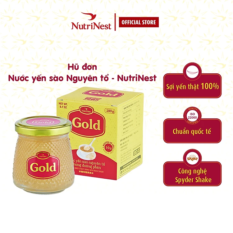 Nước Yến Sào Nguyên Tổ Chưng Đường Phèn Gold Bird NutriNest Dinh Dưỡng Nhẹ Bụng - Hũ 190g