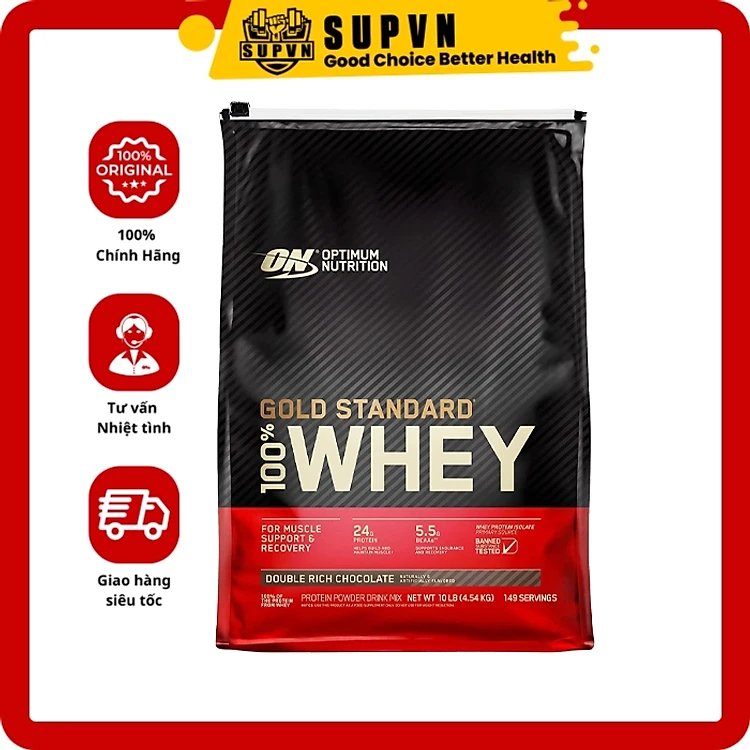 Gold Standard 100% Whey On 10lbs (4.54Kg) - Sữa Bổ Sung Protein Hỗ Trợ Tăng Cơ Optimum Nutrition