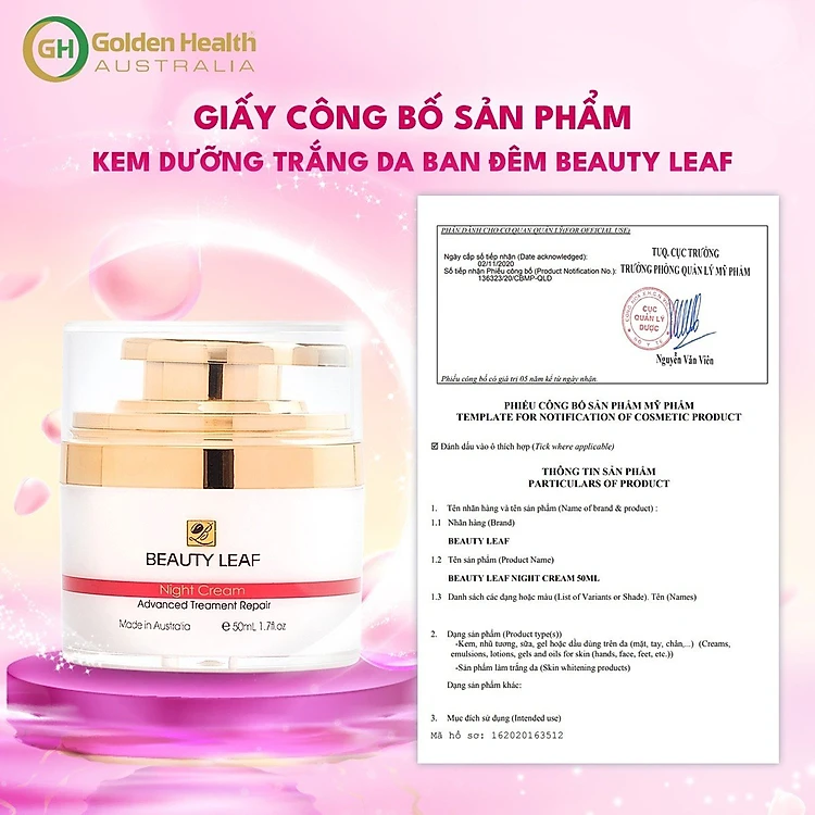 [GOLDEN HEALTH] Kem Dưỡng Trắng Da, Mờ Thâm, Nám, Tàn Nhang, Giúp Tái Tạo Da, Thúc Đẩy Quá Trình Tổng Hợp Collagen, Tăng Cường Phục Hồi Da Ban Đêm Beauty Leaf Whitening Complex 50ml