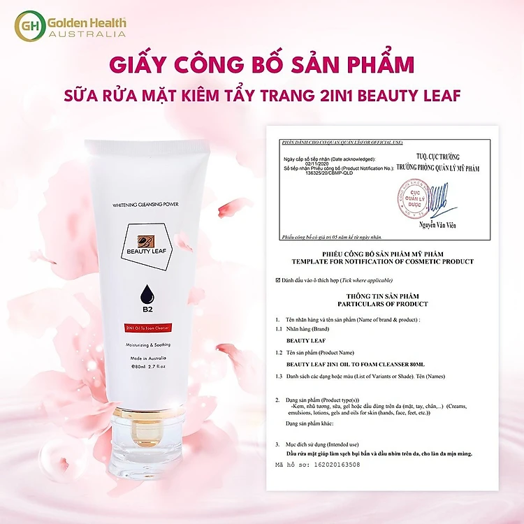 [GOLDEN HEALTH] Sữa Rửa Mặt Kiêm Tẩy Trang 2 Trong 1, Làm Sạch Sâu, Sáng Da, Cấp Ẩm Và Giúp Da Căng Mịn Không Gây Khô Da Beauty Leaf 80ml - Nhập Khẩu Chính Ngạch Từ Úc