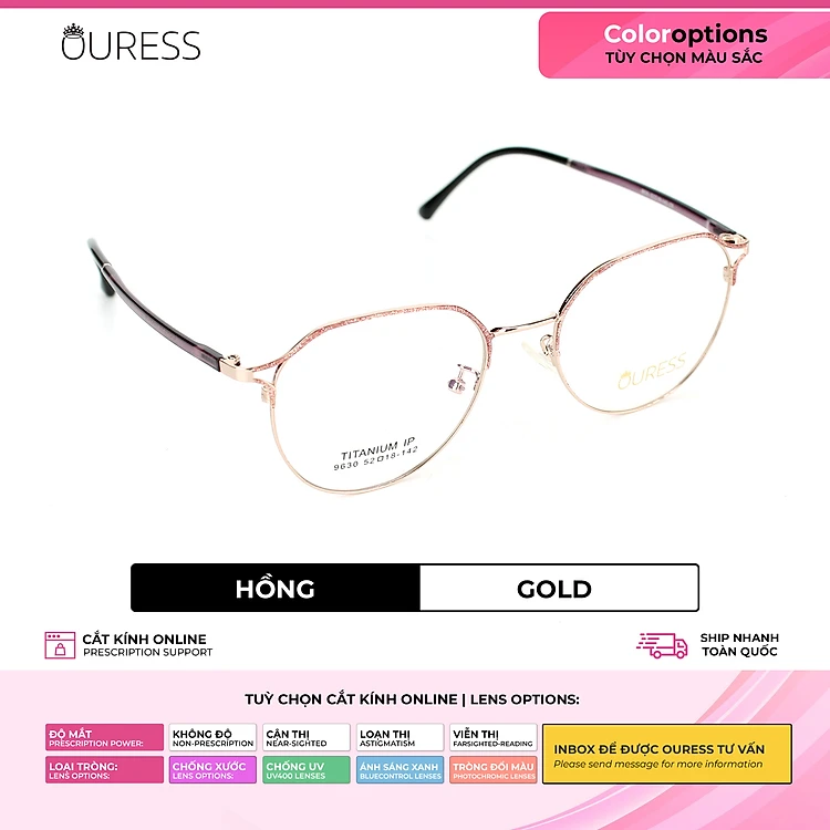 Gọng kính cận 9630 chất liệu titan thời trang mắt kính OURESS nam nữ siêu nhẹ siêu bền