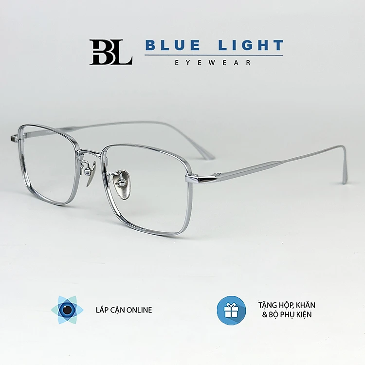 Gọng Kính Cận Giả Cận Nam Nữ Cao Cấp Titanium BLUE LIGHT, Mắt Chữ Nhật Nhỏ Dày Dặn, Nhẹ Dẻo Bạc, Đen