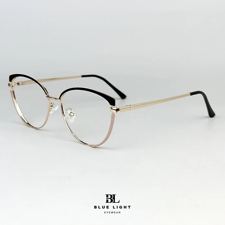 Gọng Kính Cận Giả Cận Nữ BLUE LIGHT Mắt Mèo Tròn Gọng Kim Loại Đen Vàng Chống Ánh Sáng Xanh