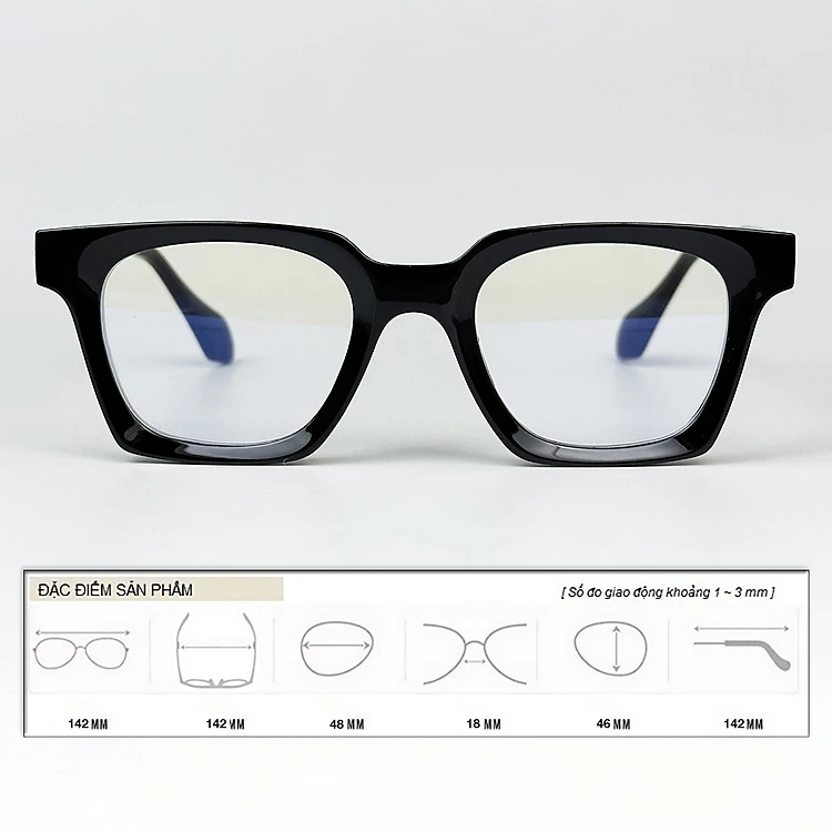 Gọng Kính Cận, Kính Giả Cận Nam Nữ BLUE LIGHT, Mắt Vuông Cứng Cáp, Gọng Nhựa Dày, Mắt Chống Ánh Sáng Xanh, Đen, Ombre