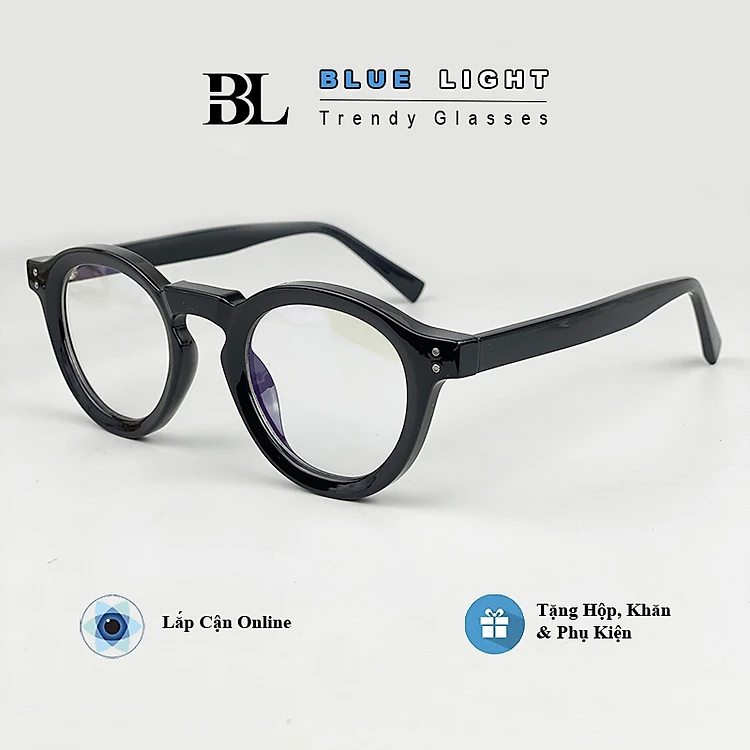 Gọng Kính Cận, Kính Giả Cận Nam Nữ Cao Cấp, Gọng Nhựa Lõi Thép, Mắt Tròn Gọng Dày Cứng Cáp Đen - BLUE LIGHT