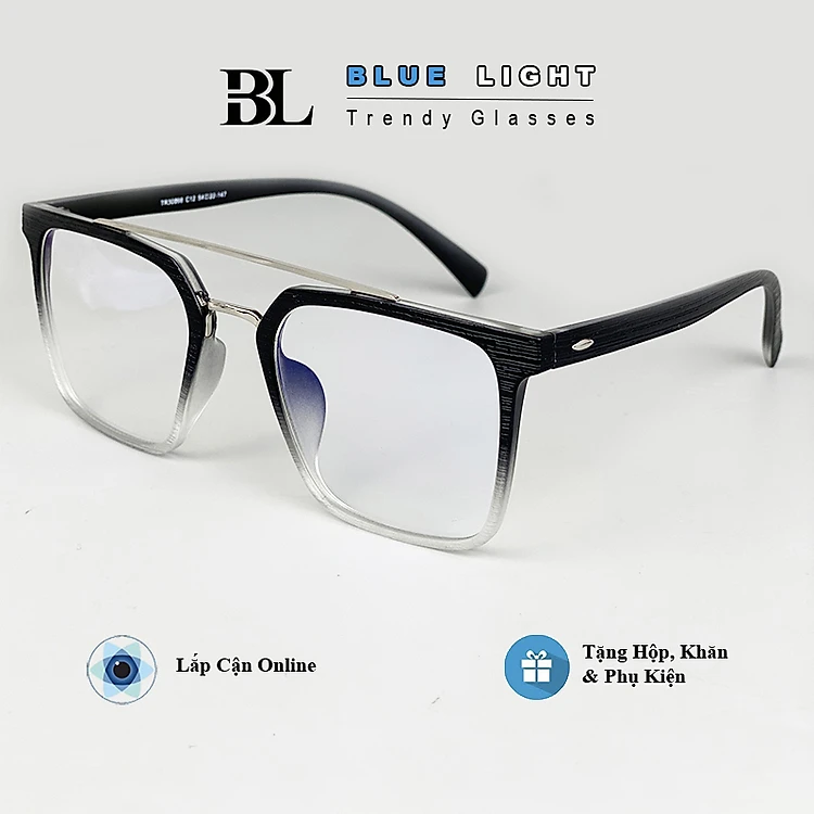 Gọng Kính Cận, Kính Giả Cận Nam Nữ Mắt Vuông To Vân Gỗ, Gọng Nhựa Dẻo TR90, Siêu Nhẹ - BLUE LIGHT