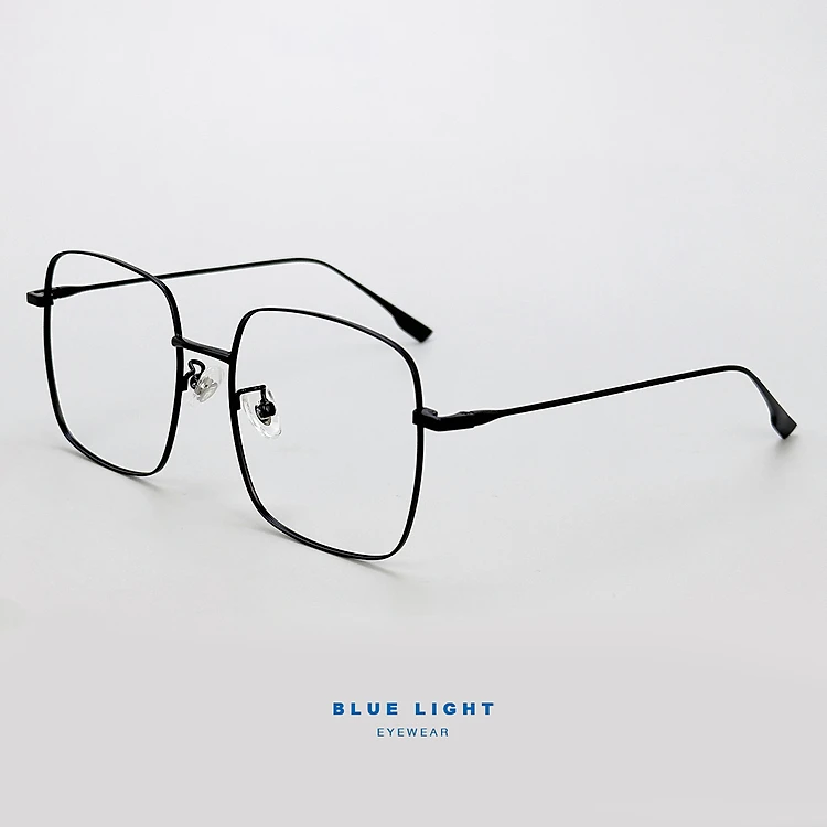 Gọng Kính Cận, Kính Giả Cận Nam Nữ TITANIUM - BLUE LIGHT Cao Cấp Siêu Nhẹ, Vuông To, Full Đen, Bạc