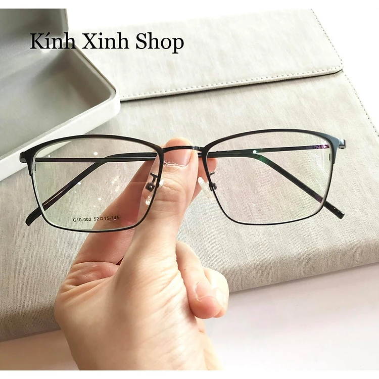 Gọng Kính Cận Mắt Vuông Kim Loại Hàn Quốc Tăm Nhẹ (ĐEN)
