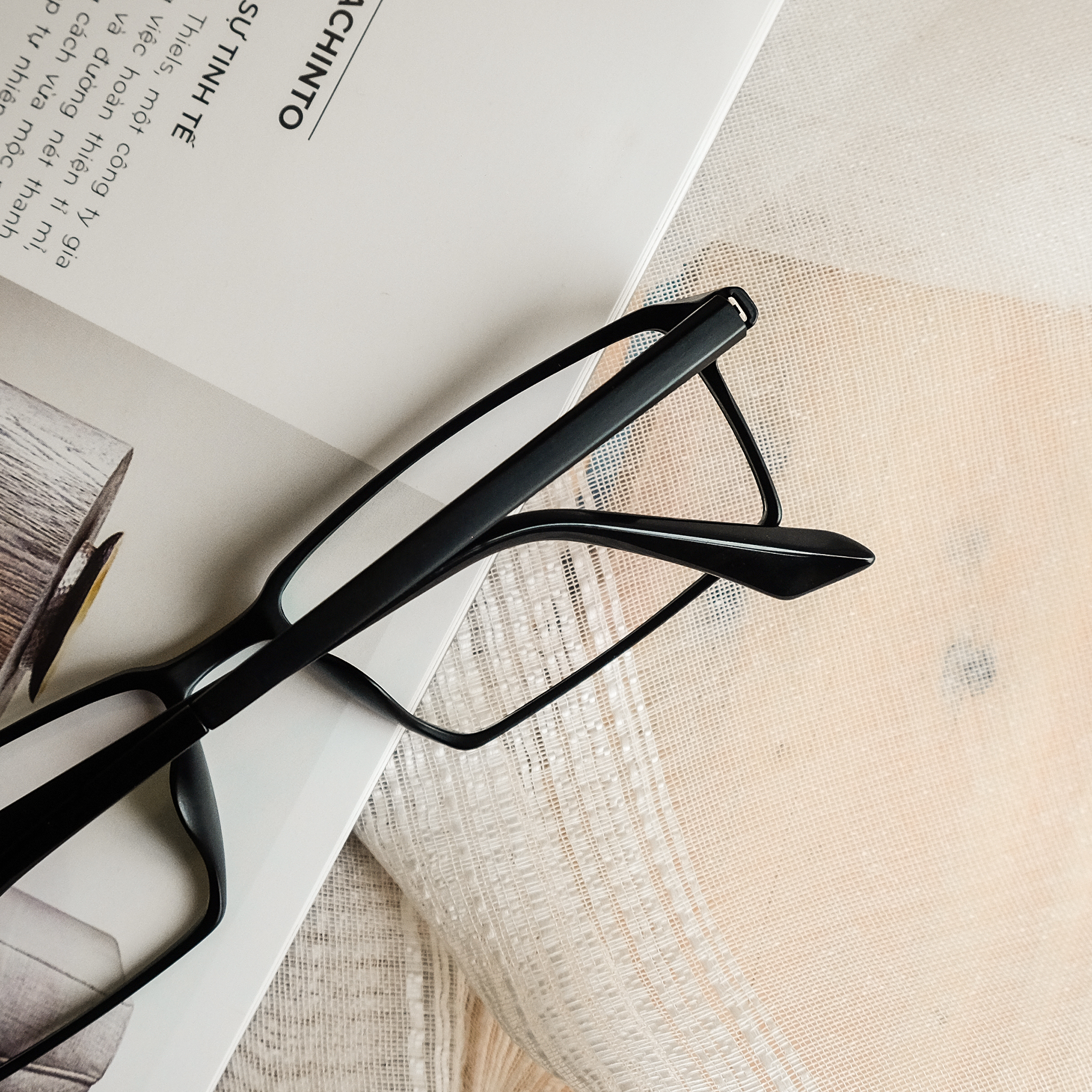 Viền nhựa dẻo màu đen nhám, càng kính là lõi kim loại mảnh bên ngoài bọc 1 lớp nhựa màu đen nhám nên khi đeo vào mặt không bị đau nhức.