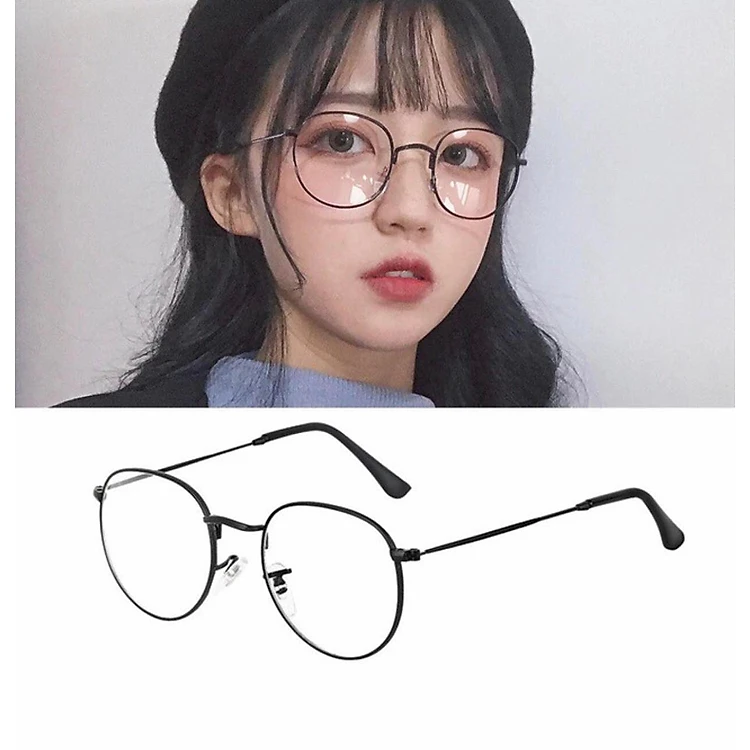 Gọng Kính Cạn Vintage Mắt Tròn Nhỏ Gọng Kim loại Nhẹ (Đen)