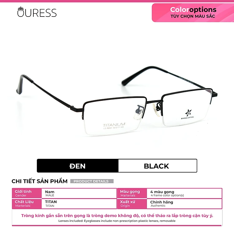 Gọng kính titanium LS9002 nửa khung thời trang nam cao cấp siêu nhẹ siêu bền OURESS