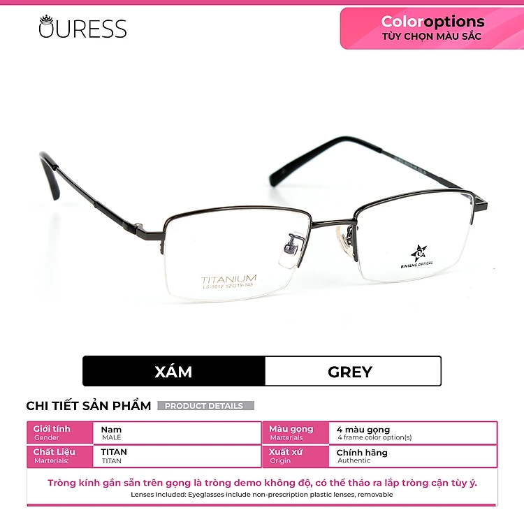 Gọng kính titanium LS9012 nửa khung thời trang nam cao cấp siêu nhẹ siêu bền OURESS