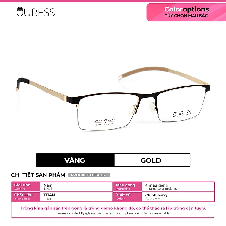 Gọng kính titanium T1182 nửa khung thời trang nam cao cấp siêu nhẹ siêu bền OURESS