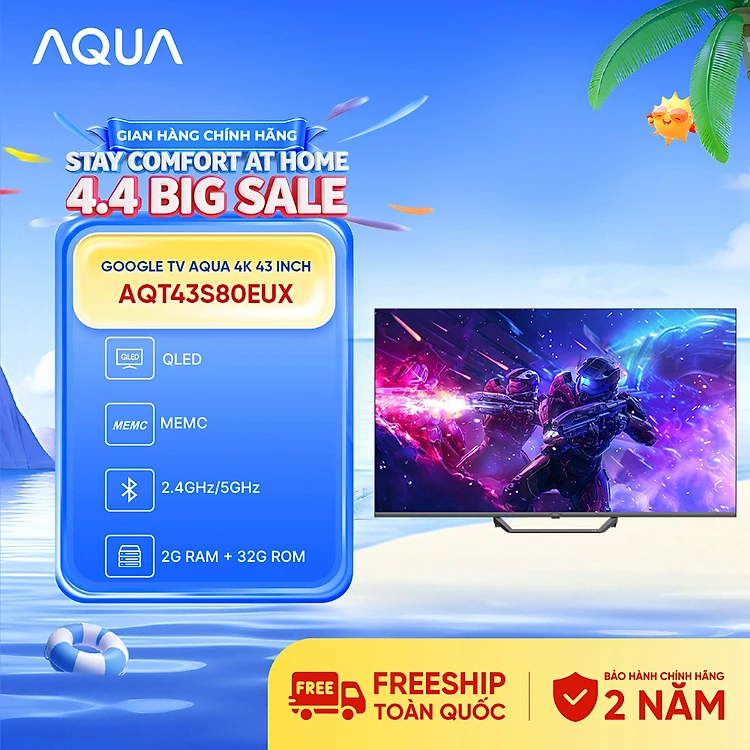 Google Tivi Aqua QLED 4K 43 inch AQT43S80EUX - Freeship toàn quốc - Bảo hành 1 đổi 1 trong 730 ngày đối với lỗi màn hình - Hàng chính hãng