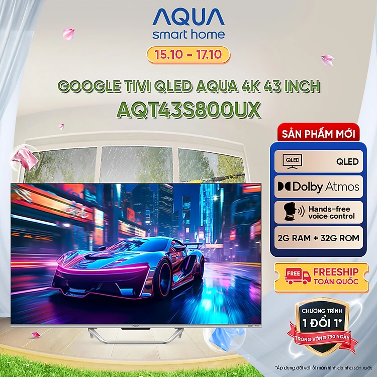 Google Tivi Aqua QLED 4K 43 inch AQT43S800UX - Freeship toàn quốc - Bảo hành 1 đổi 1 trong 730 ngày đối với lỗi màn hình - Hàng chính hãng