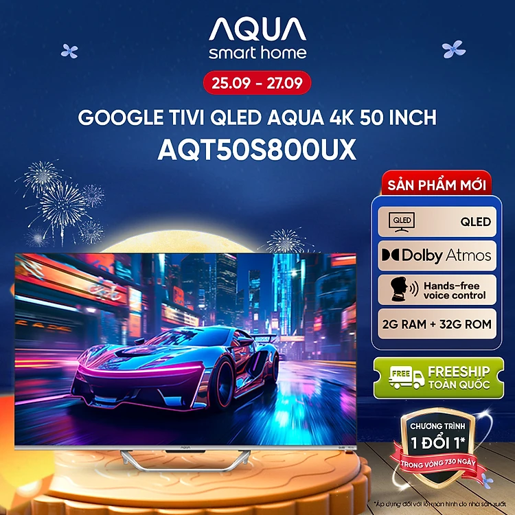 Google Tivi Aqua QLED 4K 50 inch AQT50S800UX - Freeship toàn quốc - Bảo hành 1 đổi 1 trong 730 ngày đối với lỗi màn hình - Hàng chính hãng