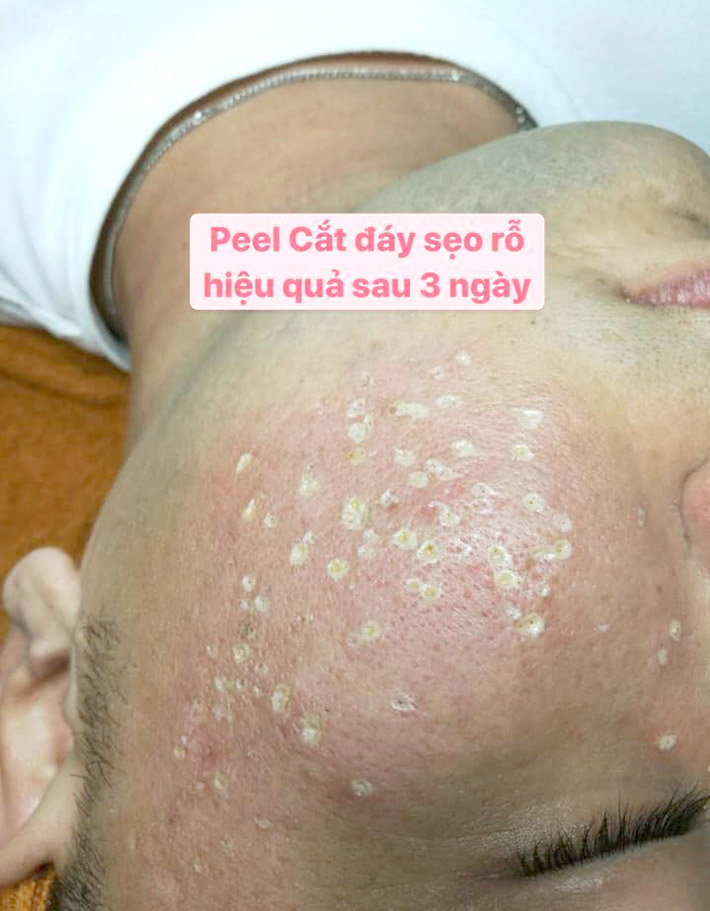 Bước 4: Sau 3-5 ngày da bắt đầu sạm có hiện tượng bong kết hợp lọ kem dưỡng sử dụng ngày 1-2 lần (tránh khi tắm kỳ mạnh gây tróc bong sớm để bong tự nhiên).