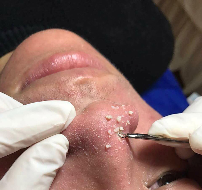 Bước 4: Mụn trồi lên lấy thanh gạt hết mụn là xong.