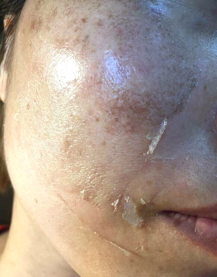 Bước 3: 2-3 ngày sau kết hợp dưỡng colagen ngày 1 lần đến khi da bóc tách thì ngưng.