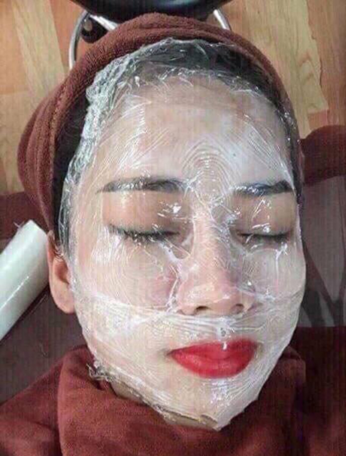 Bước 3: Bôi ủ nên da 1 lớp vừa phải, dùng bóng kính phủ kín mặt kết hợp chiếu ánh sáng thì dùng kèm ủ 30p.