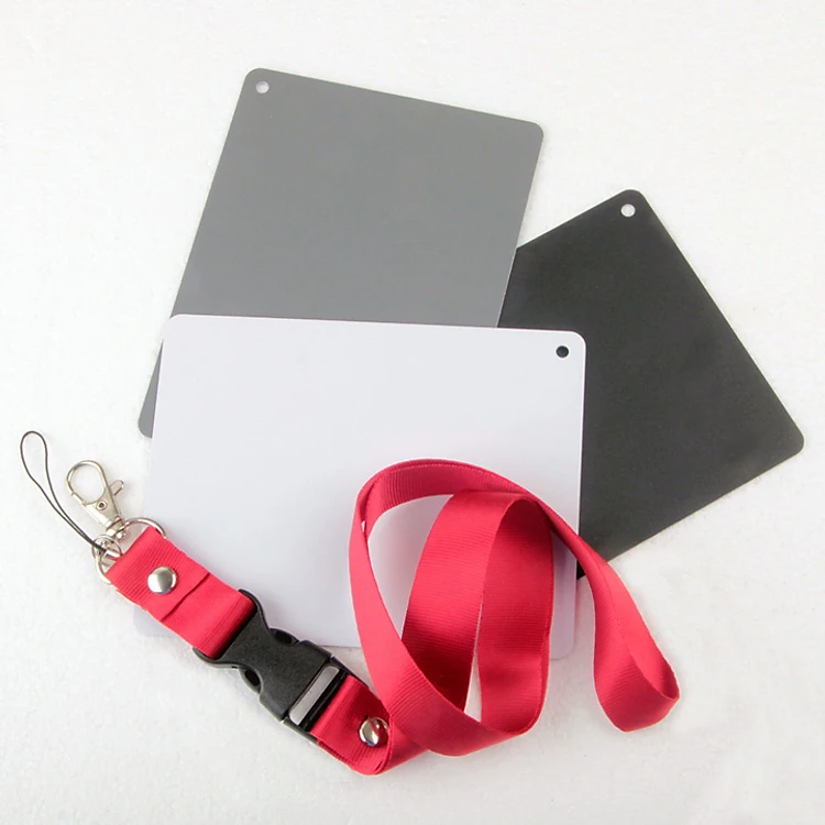 - Bộ thẻ cân bằng trắng có dây đi kèm, có thể dùng đeo cổ hoặc móc vào ba lô túi xách, giúp người dùng thao tác và mang theo rất tiện dụng.