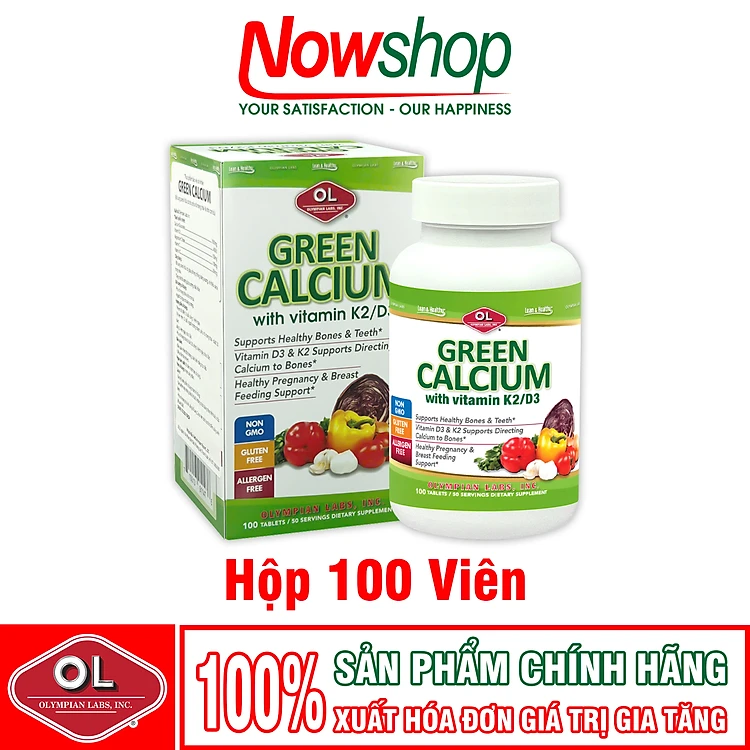 Canxi Hữu Cơ Green Calcium Olympian Labs Mỹ – 100V | D3 & K2 Hấp Thu Cao, Chắc Xương, Không Táo Bón – Hỗ Trợ Mẹ Bầu, Giúp Thai Nhi Khỏe Mạnh – Nhập Khẩu Chính Hãng