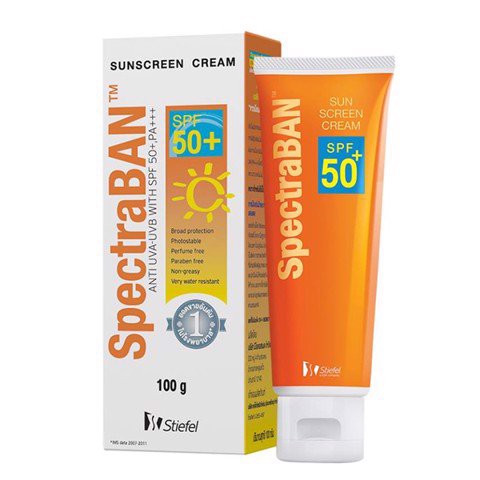 Bạn có biết kẻ thù huỷ hoại làn da là ánh nắng mặt trời không? muốn bảo vệ làn da khoẻ mạnh cần sử dụng kem chống nắng hàng ngày, kể cả khi trời âm u hay ở văn phòng. SpectraBan SFP50 PA +++,sản phẩm chống nắng hỗn hợp của Stiefel, hãng dược lớn của Mỹ và được sản xuất tại Thái Lan, phù hợp với khí hậu nóng ẩm ở Việt Nam. Sản phẩm là sự kết hợp Zinc Oxide và các thành chống nắng hoá học bền vững kết hợp Vitamin E bảo vệ và phục hồi da trước tác hại của tia UV